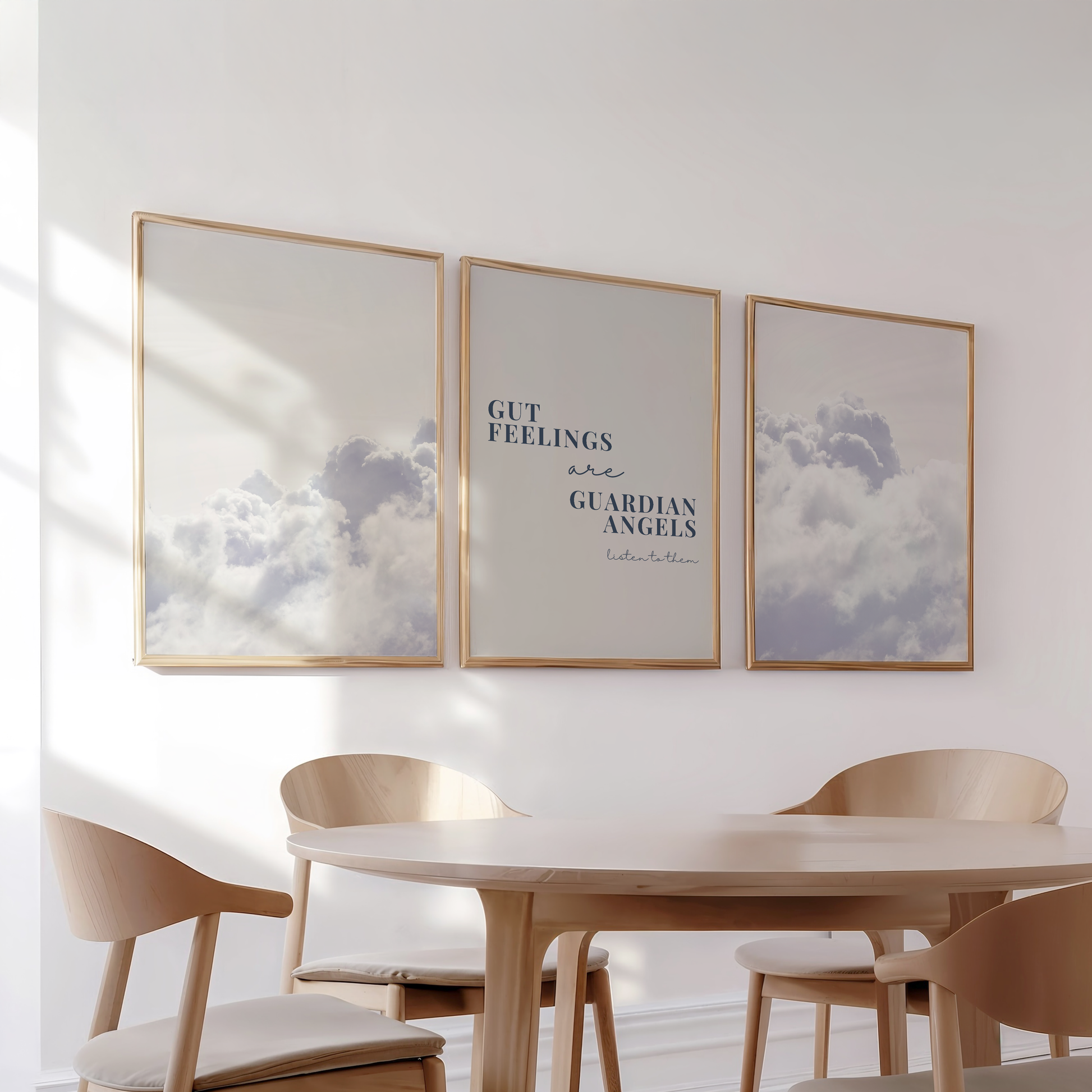 Trust your instincts with this inspirational wall art print featuring the phrase “Gut feelings are guardian angels, listen to them.” A gentle yet powerful reminder that your intuition often knows the way, this print brings meaning and mindfulness into your home.